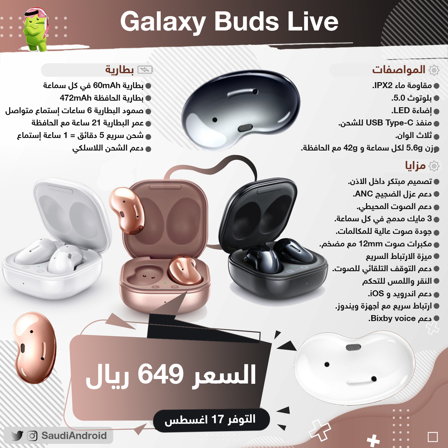 سعودي اندرويد On Twitter كل ماتود معرفته عن سماعة سامسونج الجديدة جالكسي بدز لايف مزايا مواصفات Galaxy Buds Live حبة الفاصوليا البرونزية Samsungevent حدث سامسونج Galaxybudslive Https T Co Ykr2mikkgm